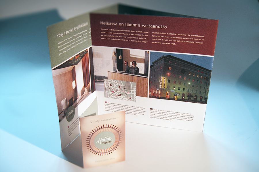 Hotelli Helkan graafinen identiteetti 2006. Esitteet, ilmoittelu, käyttögrafiikka, julkisivun grafiikka ja opasteet 2006.